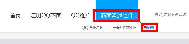 3、登錄完成后,點(diǎn)擊菜單的“商家溝通組件”里的“設(shè)置”,如下圖: