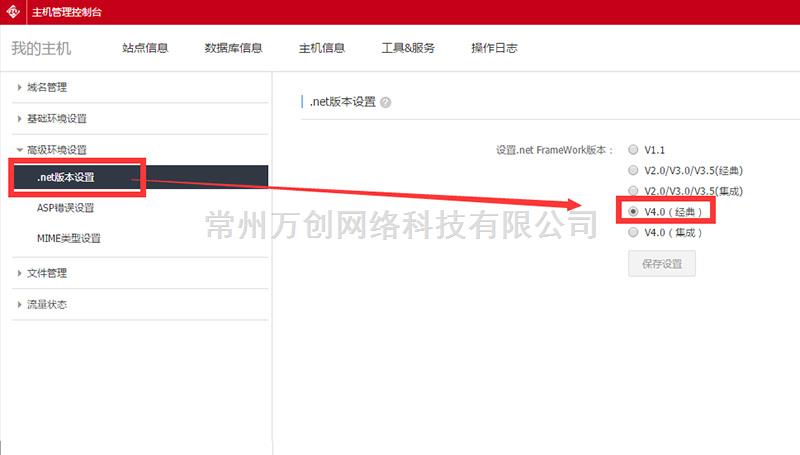 注: 以上列出了阿里云和中頻的方法,因空間服務(wù)商比較多,不一一列出,使用我們的系統(tǒng)時(shí),只要是WINDOWS系統(tǒng)支持.NET 4.0的,都會(huì)有.NET版本的選項(xiàng),請(qǐng)選擇4.0經(jīng)典就可以正常運(yùn)行。