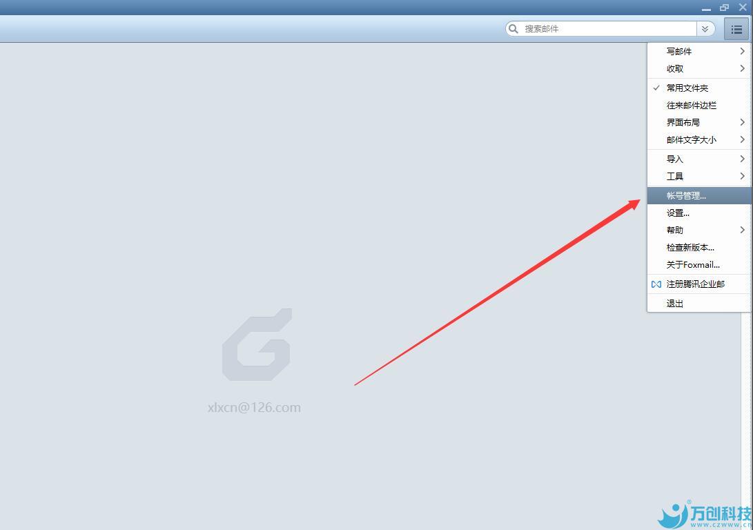 如圖:打開FOXMAIL,點向右上角菜單,選擇賬號管理