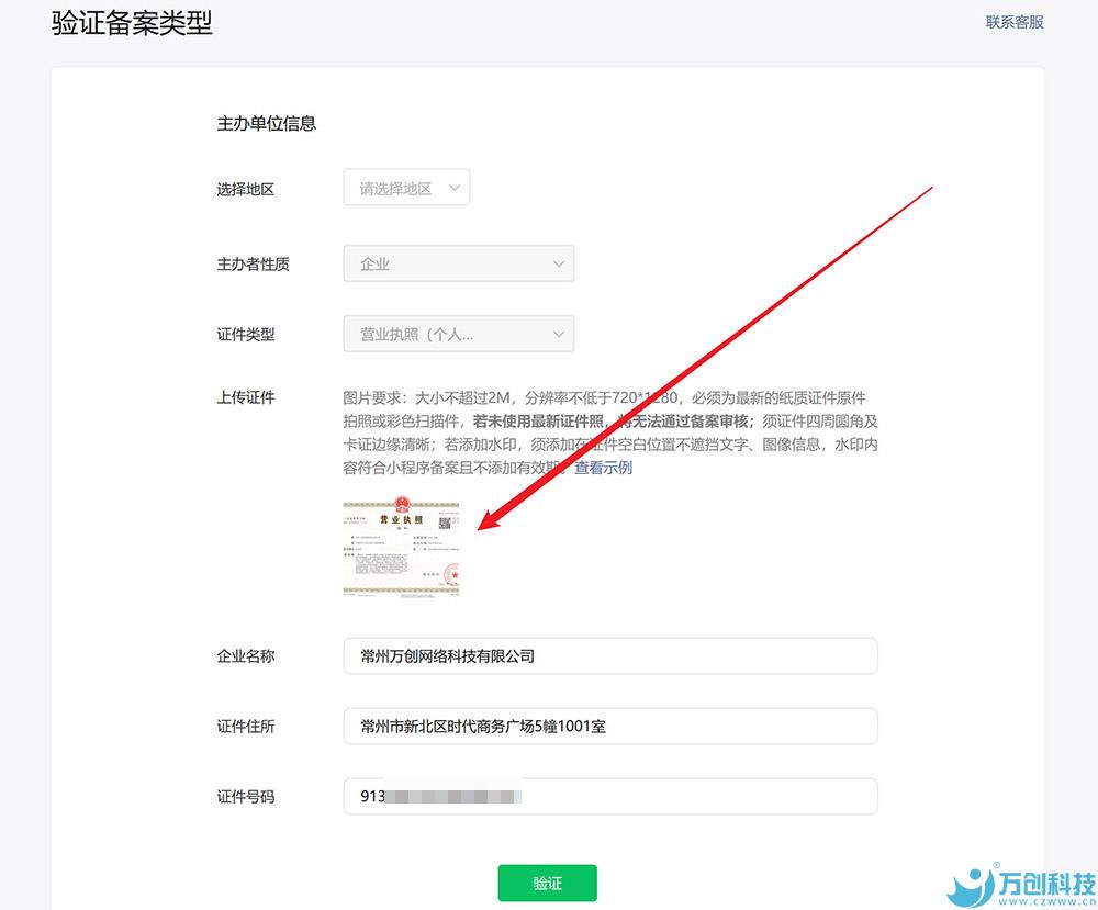 第二步:選擇企業(yè)所在地區(qū),上傳營業(yè)執(zhí)照,然后提交。