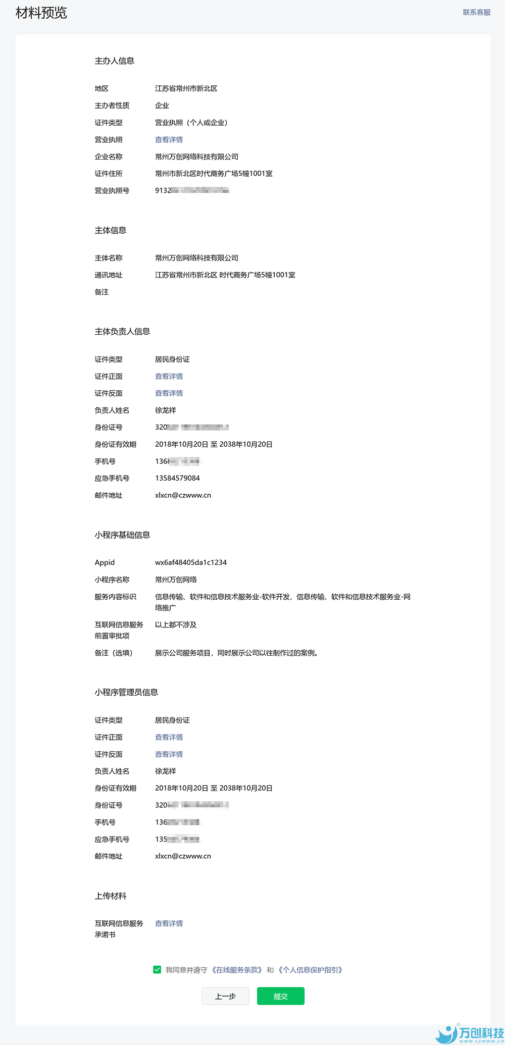 提交的最后顯示所有信息確認(rèn),需要仔細審核是否有錯誤,如果無錯后選擇同時提交。