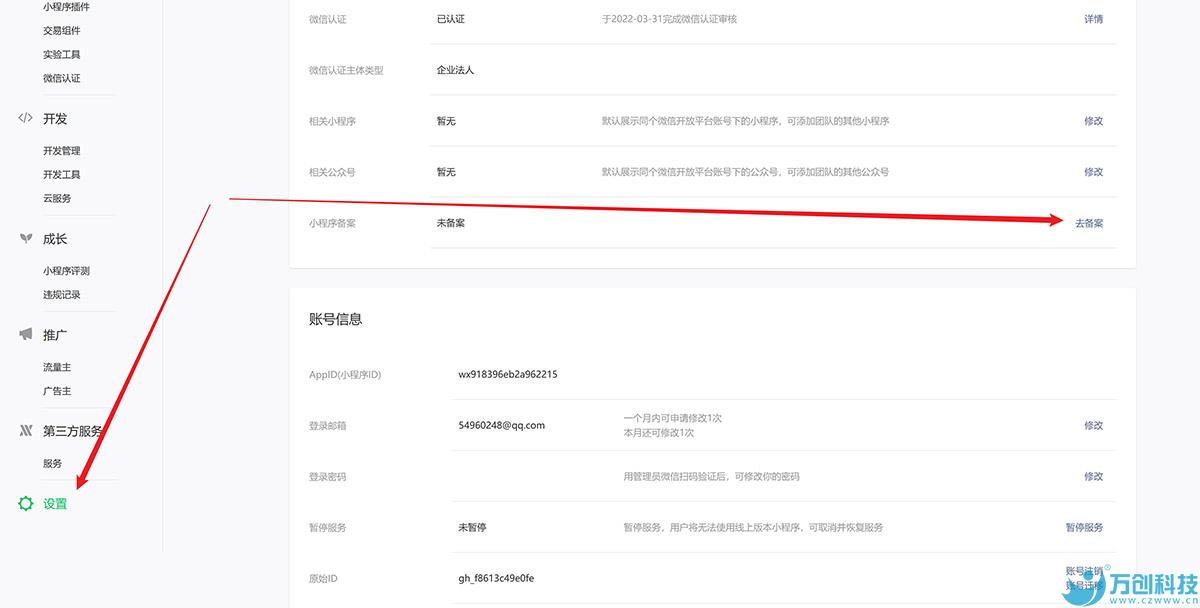 第一步:通過掃碼登錄微信小程序后臺,找到設(shè)置里的小程序備案,點擊進入,如下圖: