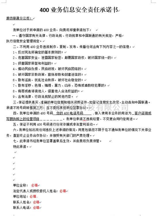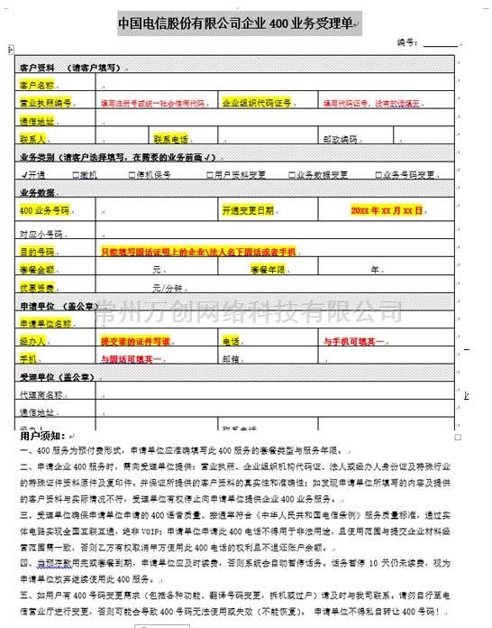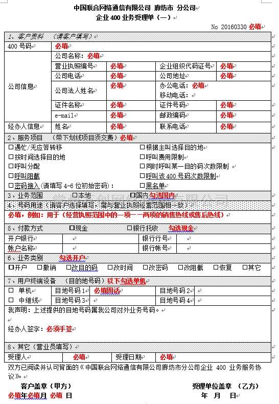從現(xiàn)在開始,所有 400電話都必需實名制,填寫表單分電話和聯(lián)通不同。具體信息如下:
