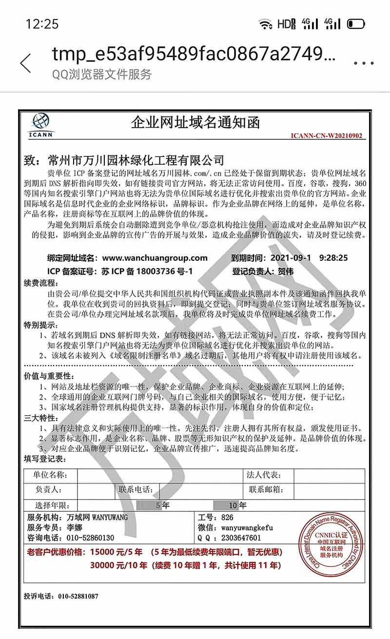 今天一客戶質(zhì)問為何沒給他們網(wǎng)站續(xù)費,說有公司通知他們網(wǎng)站續(xù)費,但實際我們已續(xù)費且能正常打開。解說后客戶發(fā)來一個通知函,如下圖: