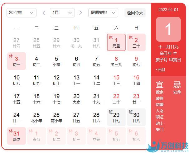 2022年元旦放假時間為:2022年1月1日(周六)-2022年1月3日(周一),共放假3天。