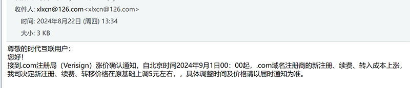 最近接到多家IDC服務(wù)商的郵箱或QQ微信通知,從9月1日開始,針對.COM域名的注冊、續(xù)費費用再次全面上漲,但通知中沒有提到上漲多少。最近幾年.COM域名的價格步步升高,.NET的價格已漲到了99一年。行業(yè)越不景氣成本越來越高。