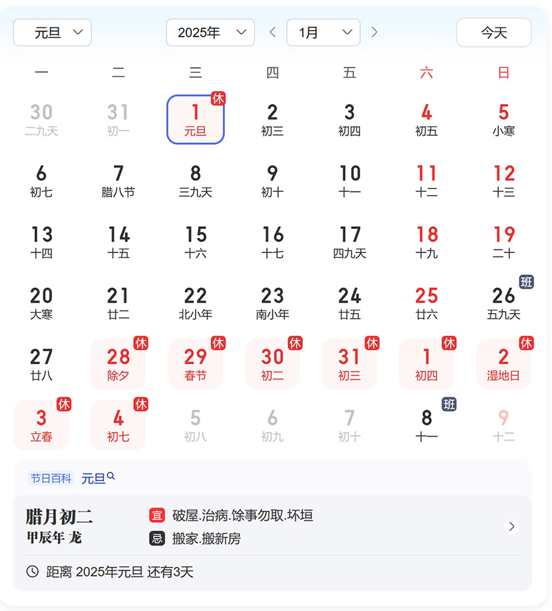 根據(jù)國家關(guān)于國慶放假規(guī)定,我司2025年元旦節(jié)放假時間為:
